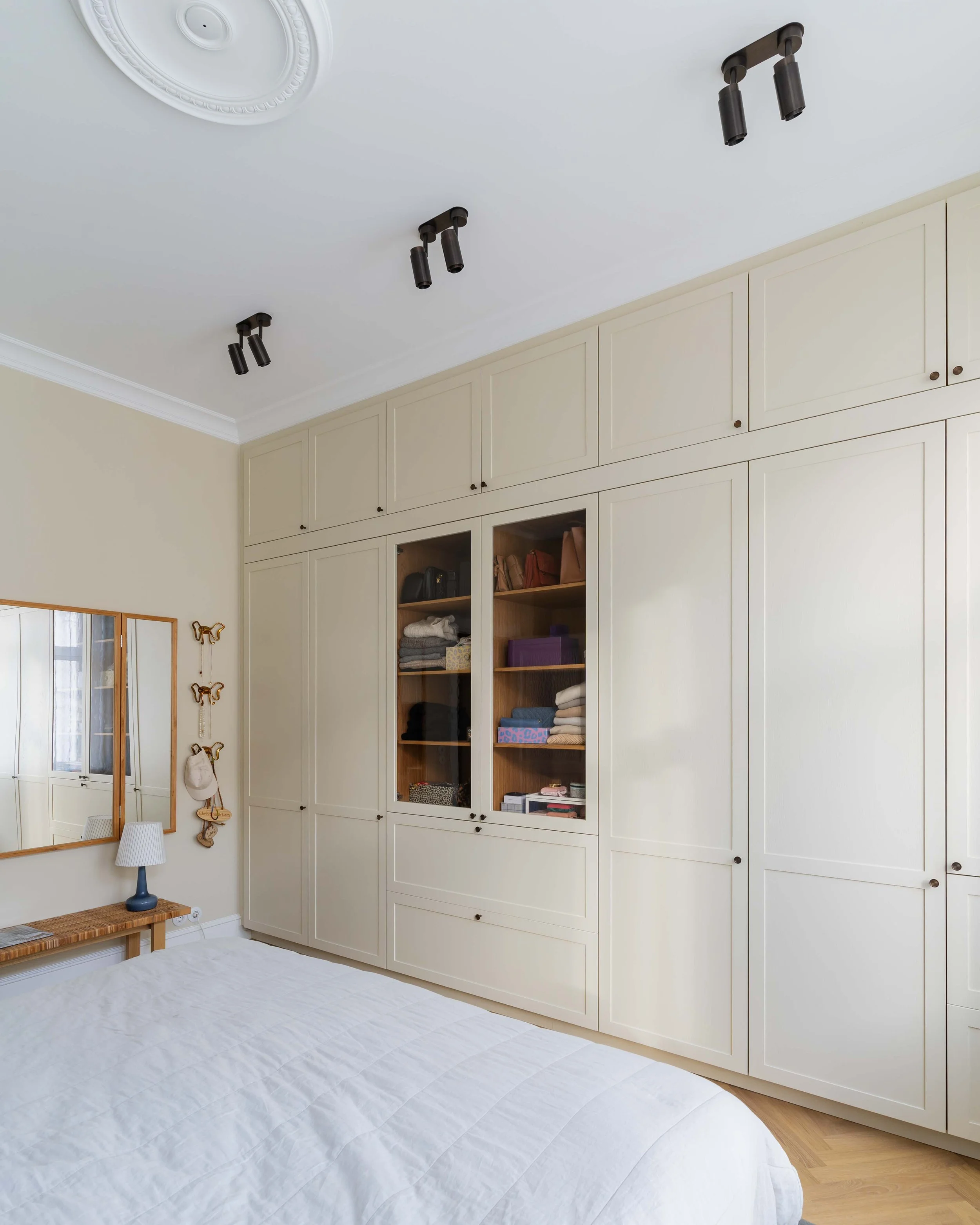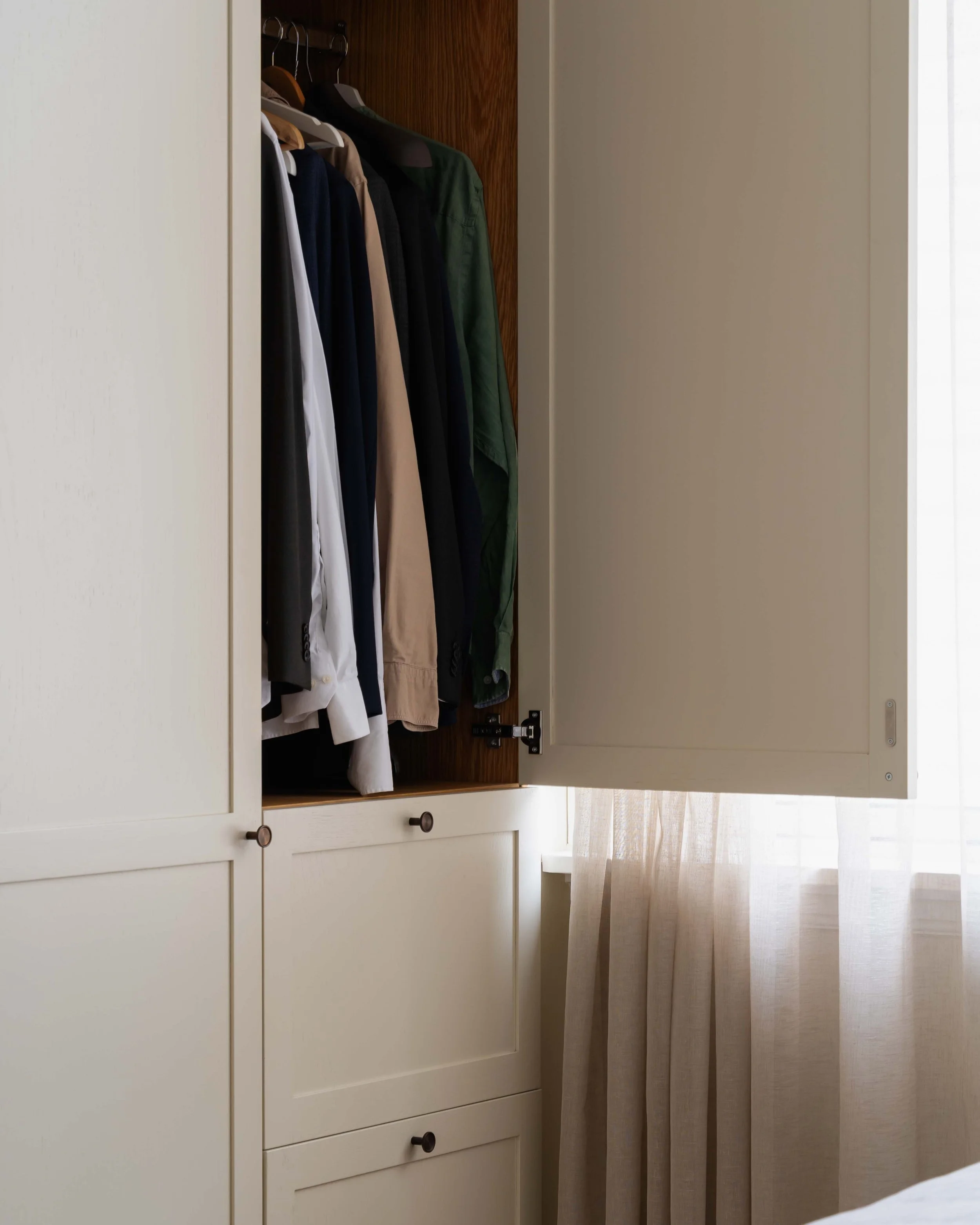 Garderobeskab indbygget, fra gulv til loft og væg til væg.